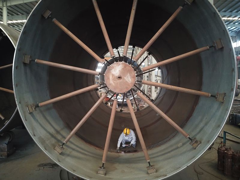 Este taller realiza soldaduras con remache, hornos giratorios y rectificadoras. Está equipado con grandes equipos, como fresadoras puente y fresadoras comunes de 4x16 m, tornos verticales de 8m, tornos procesadores de cilindros, grúas con una capacidad de carga de 125tons, etc. Los tornos pueden utilizarse para trabajar en cilindros muy grandes y pesados, y pueden tornear, agujerear y fresar al mismo tiempo. El tamaño máximo que pueden procesar es de Φ7.1*24 m, y la carga máxima es de 200 t.